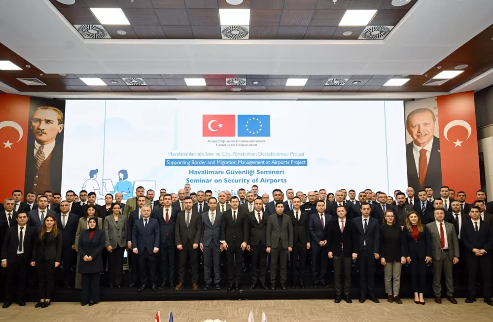 İçişleri Bakanlığı Göç İdaresi Başkanlığı Sınır Yönetimi Genel Müdürlüğü tarafından yürütülmekte olan ‘Havalimanlarında Sınır ve Göç Yönetiminin Desteklenmesi Projesi’ kapsamında Antalya’da ‘Havalimanı Güvenliği Semineri’ düzenlendi. Seminerde; sınır güvenliği ve göç yönetimi süreçlerindeki modernizasyon çalışmaları, göç yönetimine ilişkin uygulamalar, havalimanında uygulanan güvenlik süreçleri ve saha uygulamaları ile kurumlar arası iş birliği değerlendirildi.