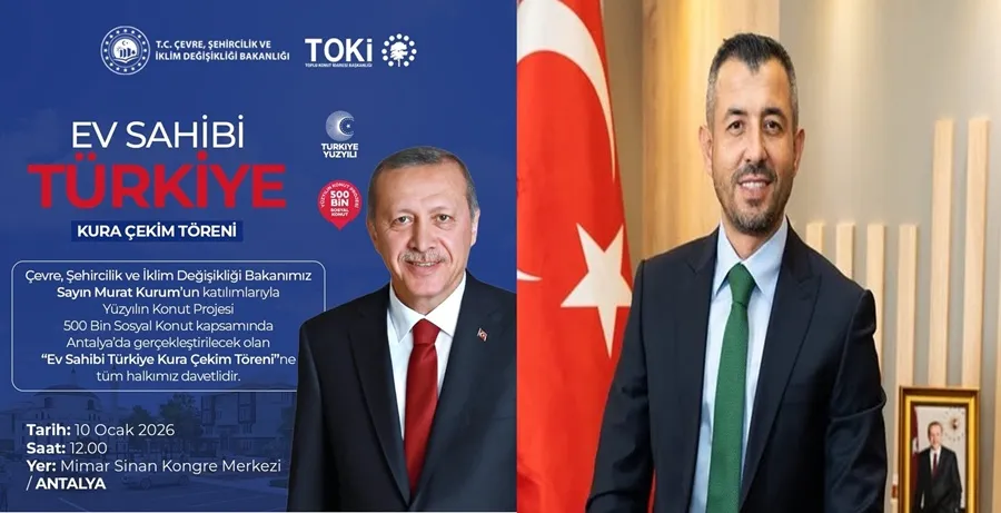 Antalya’da yapılacak olan Yüzyılın Konut Projesi 500 Bin Sosyal Konut kapsamında Çevre, Şehircilik ve İklim Değişikliği Murat Kurum’un katılımıyla kura çekimi töreni düzenlenecek.