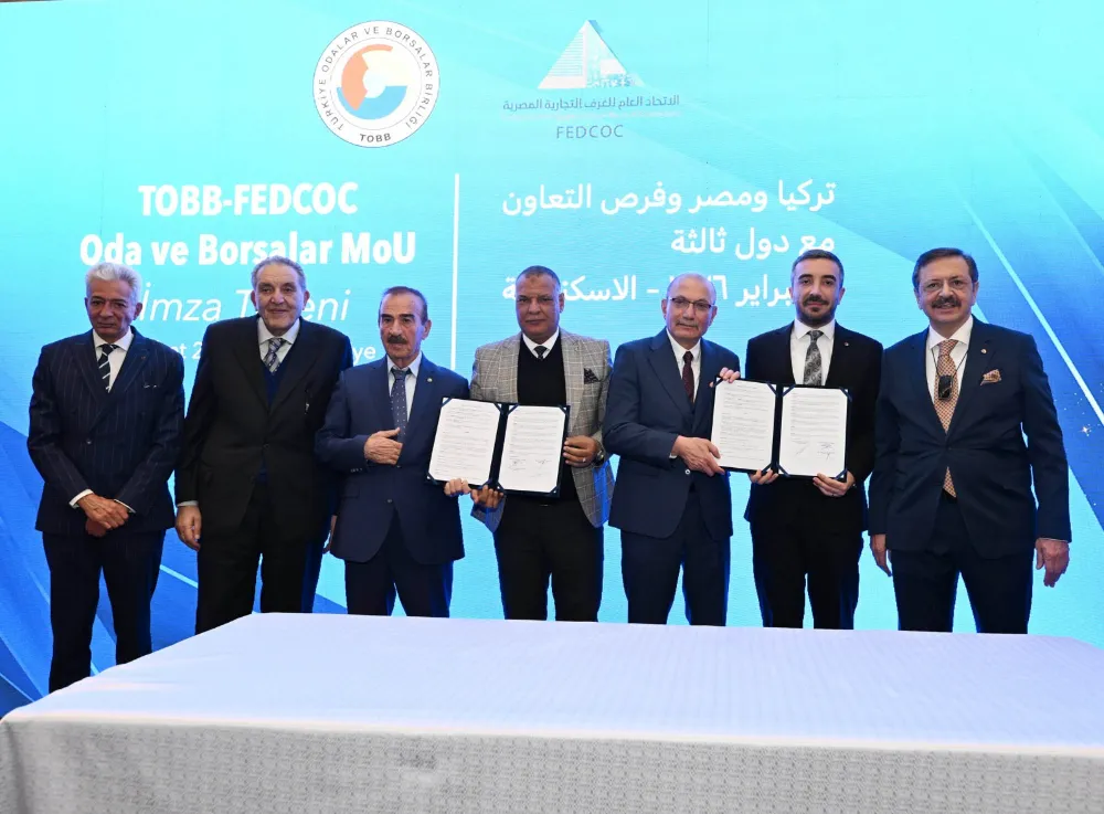 Oda ve Borsa Başkanlarının katılım sağladığı Türkiye-Mısır Oda ve Borsalar İş Birliği Forumu program kapsamında, TOBB ve Mısır Ticaret ve Sanayi Odaları Federasyonu ile iki ülke Oda ve Borsaları arasında sanayi ve ticaret alanlarında işbirliği anlaşmaları imzalandı. İmzalanan protokol ile, ticari ilişkilerin geliştirilmesi, karşılıklı yatırım olanaklarının artırılması ve üyeler arasında sürdürülebilir iş birliklerinin oluşturulması hedefleniyor.