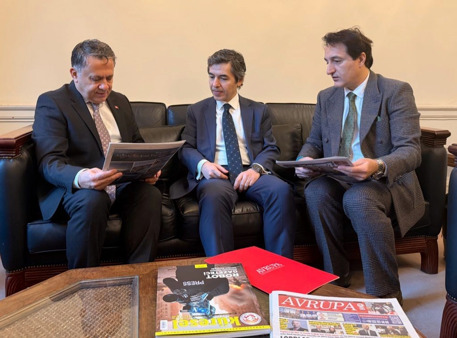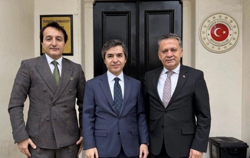 Küresel Gazeteciler Konseyi Başkanı Mehmet Ali Dim ve beraberindeki heyet Londra Büyükelçisi Osman Koray Ertaş’ı ziyaret etti.