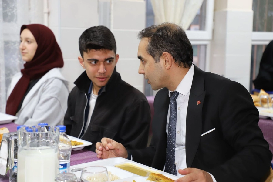 Programın devamında Prof. Dr. Mehmet Şirik ve İl Millî Eğitim Müdürü Ali Tosun, pansiyonda kalan öğrencilerle birlikte iftar yaptı.