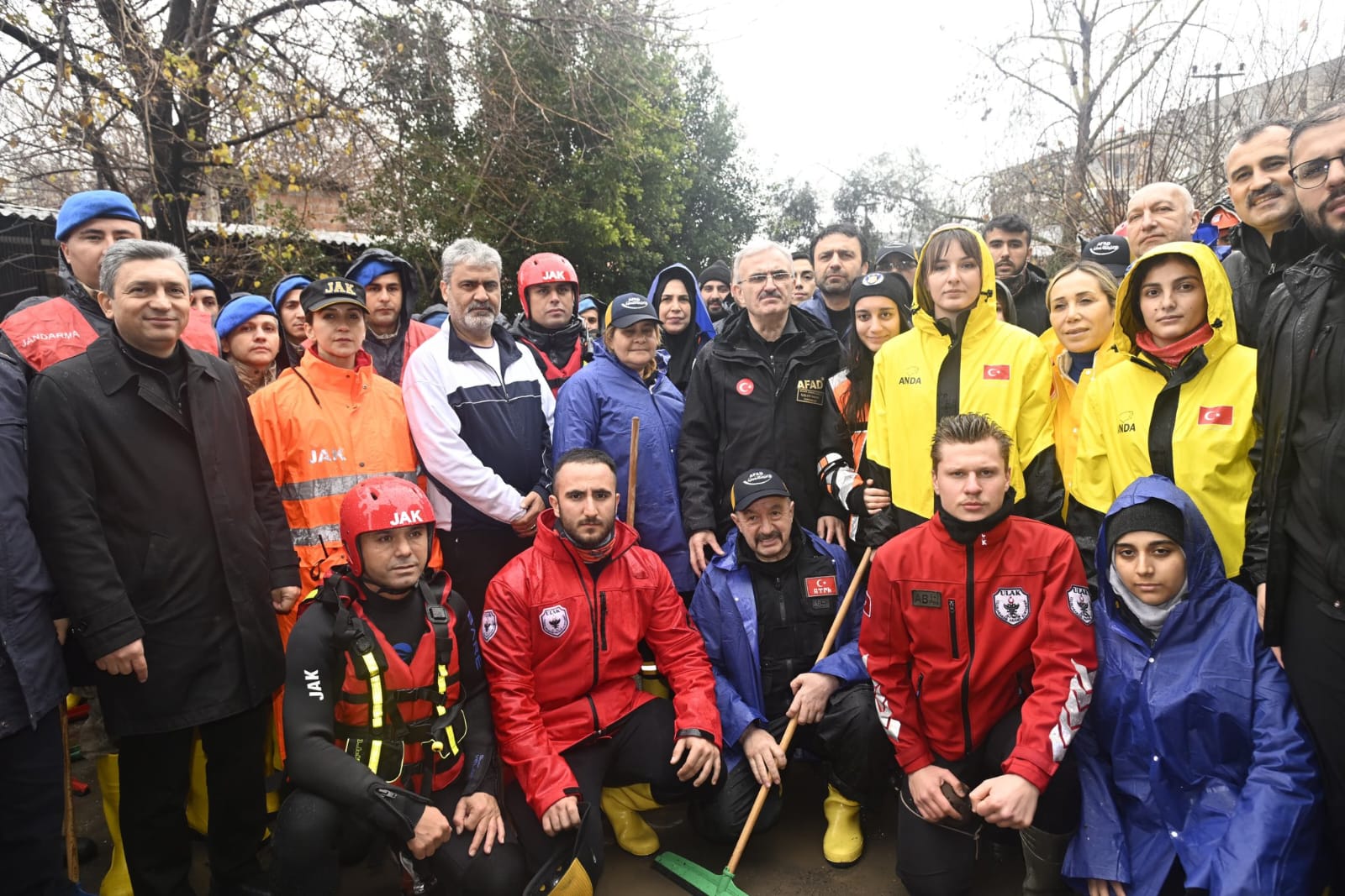 İncelemeler sırasında İzmir’den gelen AFAD Gönüllüleri ile sohbet eden İçişleri Bakan Yardımcısı Münir Karaloğlu; “AFAD Gönüllülerimiz Türkiye’nin 4 bir yanından gelerek su taşkınlarının sebep olduğu izleri silmek için çalışıyor. 600 AFAD Gönüllümüz, vatandaşlarımızın ev ve iş yerlerinde devam eden temizleme çalışmalarına destek veriyorlar. Hepsinin farklı bir mesleği var ama bugün burada hiçbir maddi beklenti olmadan sadece topluma faydalı olmak arzusuyla çalışıyorlar. Tüm AFAD Gönüllülerimize yardımları için teşekkür ediyoruz.” dedi.