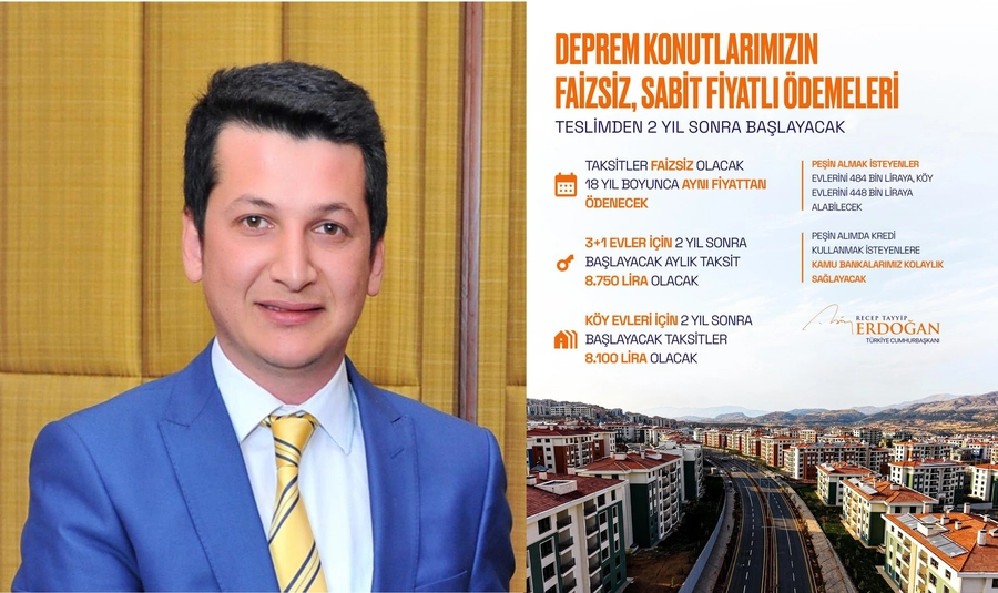 “Cumhurbaşkanımız Sayın Recep Tayyip Erdoğan’ın liderliğinde, depremzede vatandaşlarımız için verilen sözler bir bir yerine getirilmektedir. Deprem konutlarımızın ödemeleri, teslimden 2 yıl sonra başlayacak, faizsiz, sabit fiyatlı ve 18 yıl vadeli olacaktır.