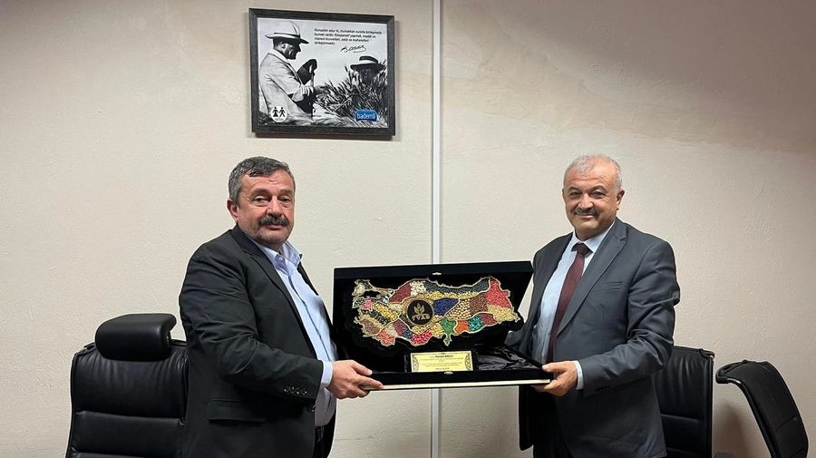 Tohum Yetiştiricileri Alt Birliği Yönetim Kurulu Başkanı Miktat Olgun ve beraberindeki Irak heyeti, Ödemiş Bademli Kooperatifi Yönetim Kurulu Başkanı Hurşit Nallı’yı ziyaret etti.